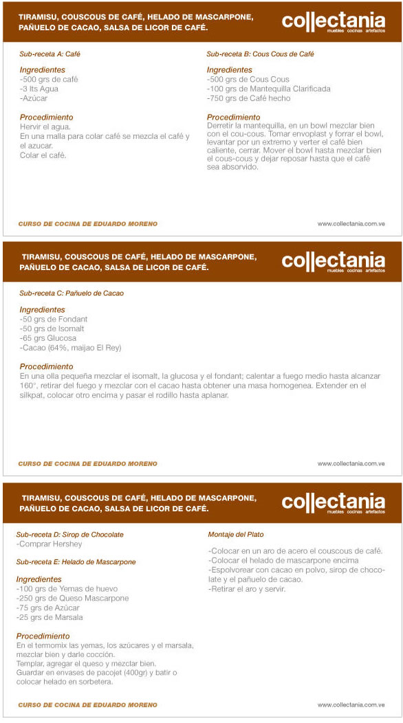 Tiramisú, couscous de café, helado de mascarpone...